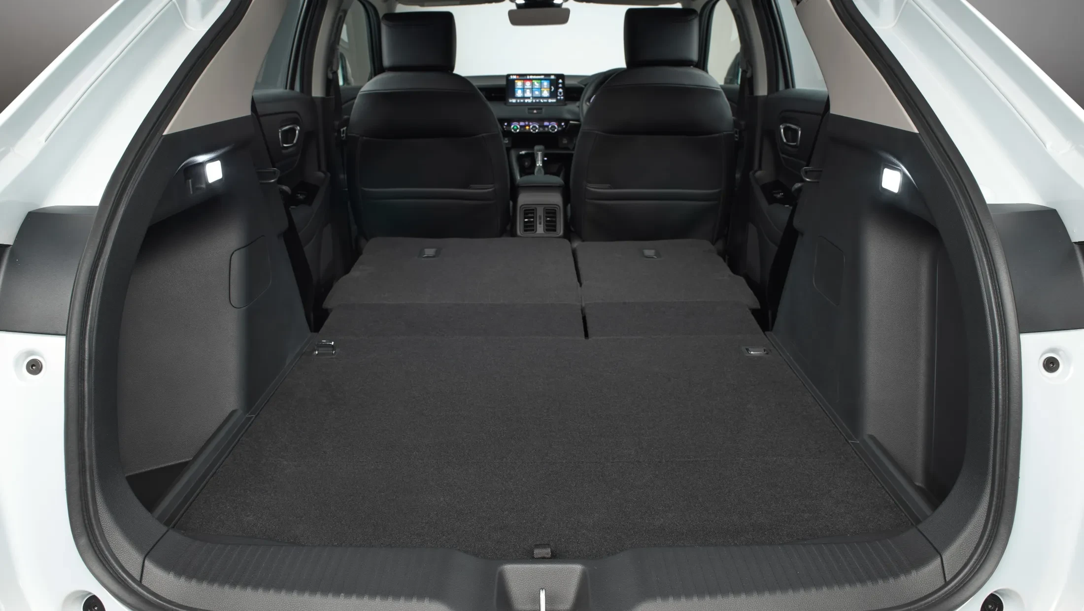 Stap in het interieur van de Honda HR-V en u wordt begroet door een oase van comfort en luxe. Het ruime interieur biedt voldoende zitruimte voor u en uw passagiers, evenals een flexibele bagageruimte die zich aanpast aan uw behoeften. De hoogwaardige materialen en het doordachte ontwerp van het interieur creëren een verfijnde en uitnodigende sfeer. Geniet van het gemak van de verstelbare achterbank en de slimme opbergoplossingen die ervoor zorgen dat al uw spullen georganiseerd blijven, waar uw avonturen u ook brengen.