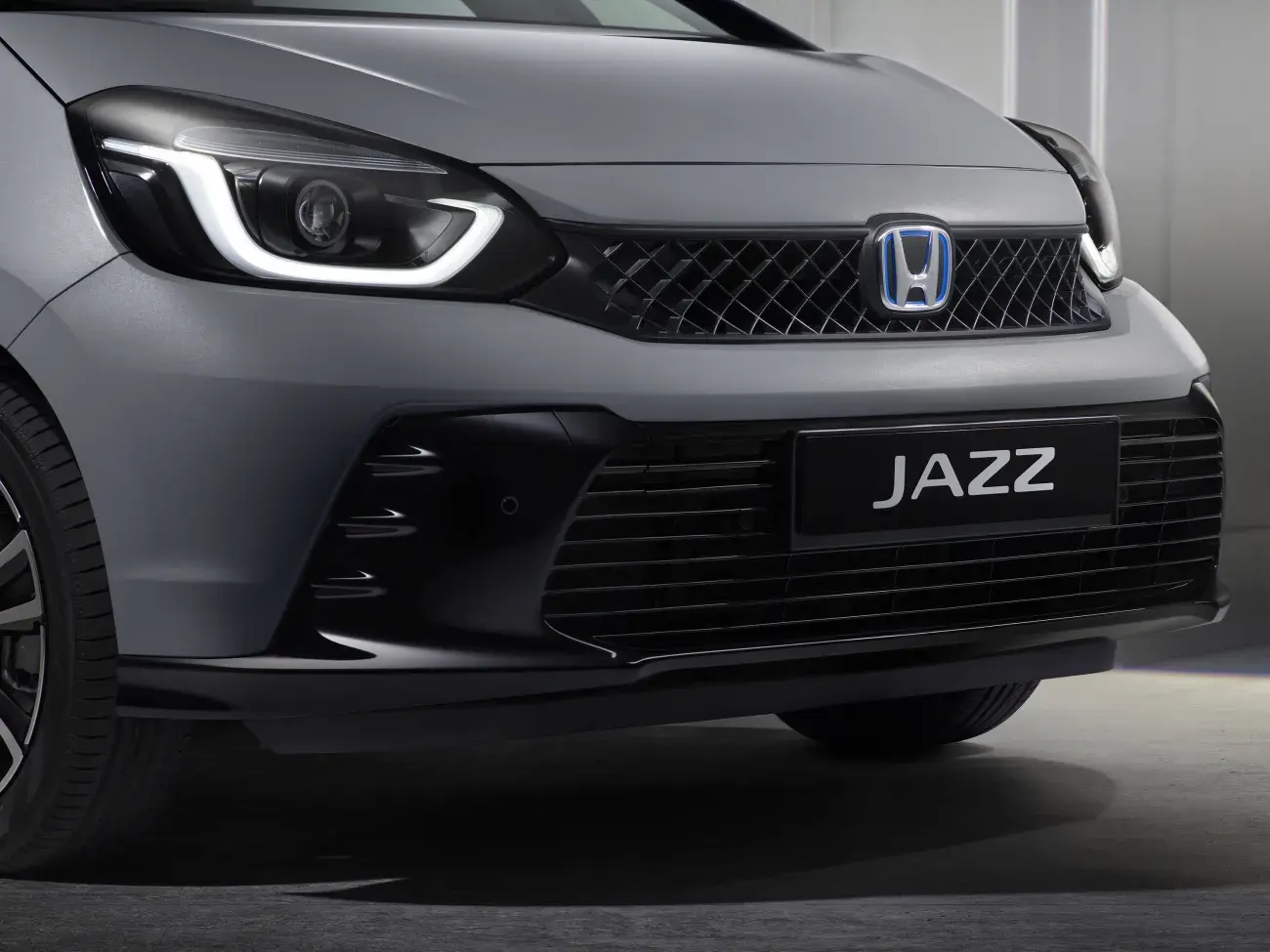 De Honda Jazz e:HEV maakt een krachtige indruk met zijn opvallende kenmerken en strakke lijnen. Het gestroomlijnde exterieurontwerp, inclusief de kenmerkende voorgrille en de elegante koplampen, geeft de Jazz een moderne uitstraling.